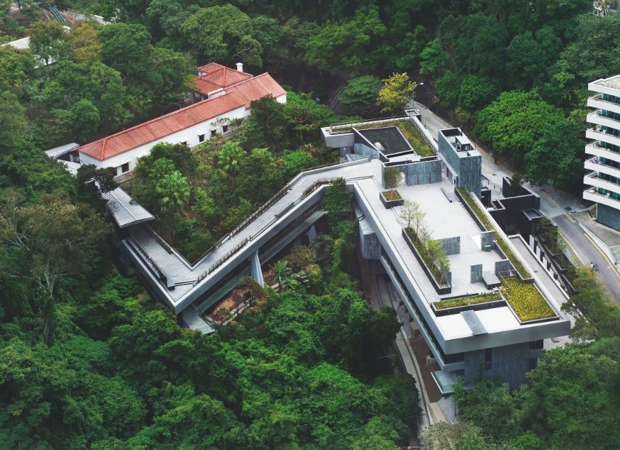 Our firm assessed façade and roof conditions of the existing Victoria Barracks, former explosive magazine buildings that were integrated into the new Asia Society Museum Campus. The materiality of the existing building comprised of very stout concrete wall, and robust red clay tile of cast concrete roof structures is juxtaposed with the new very modern elevated metal and glass clad structures. In addition we helped the design with the sourcing and testing of the unique copper embossed soffit material that clads the bridges that connect the historic buildings to the modern structures.