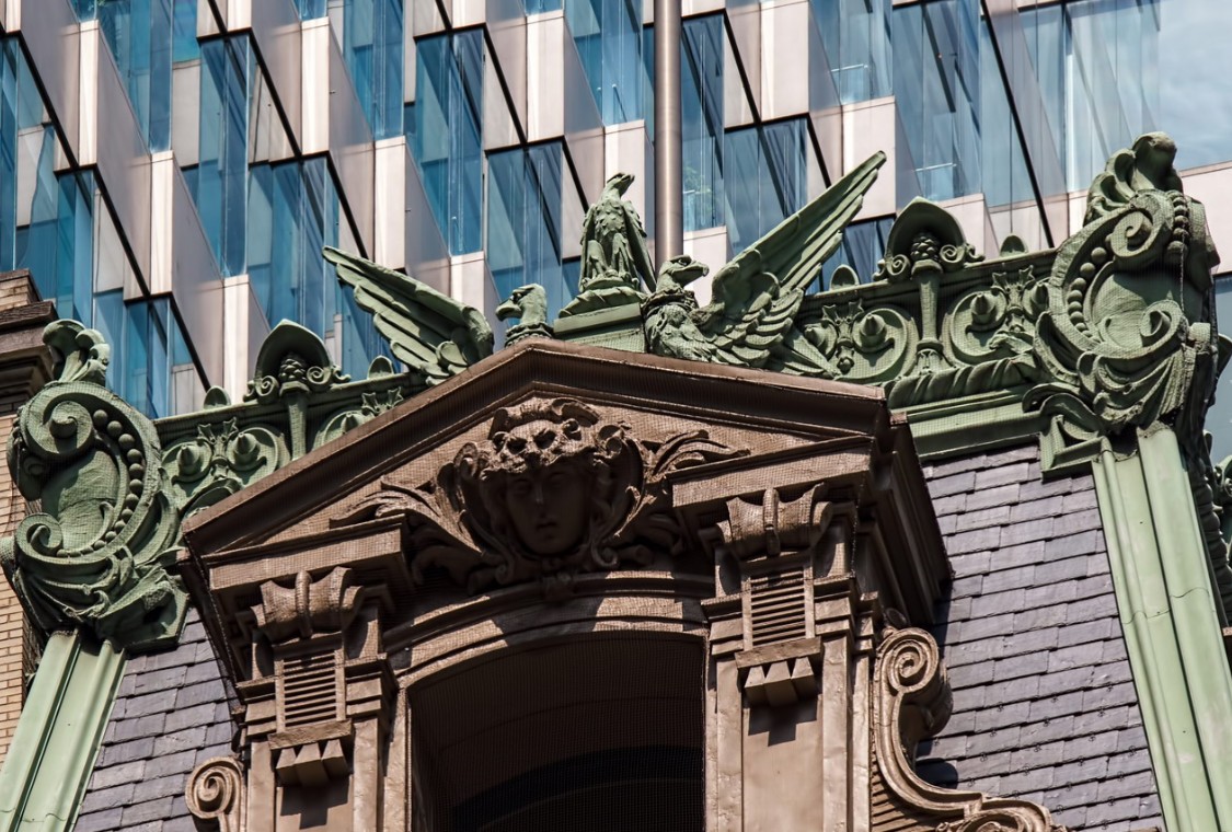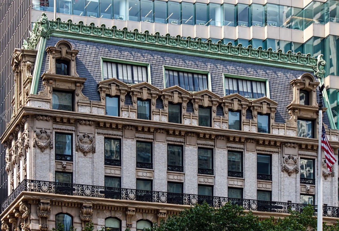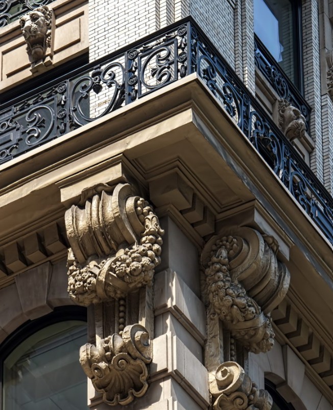 The building is on the National Register of Historic Places and is protected by the New York Landmark Preservation Commission. The Beaux-Arts style building was constructed in 1902 and the building remains largely as originally designed. The façade is comprised of rusticated limestone, steel windows, cornices, iron railings and architectural filigree. The ground floor features steel and glass window and the entrance is protected by an ornate steel and glass canopy.